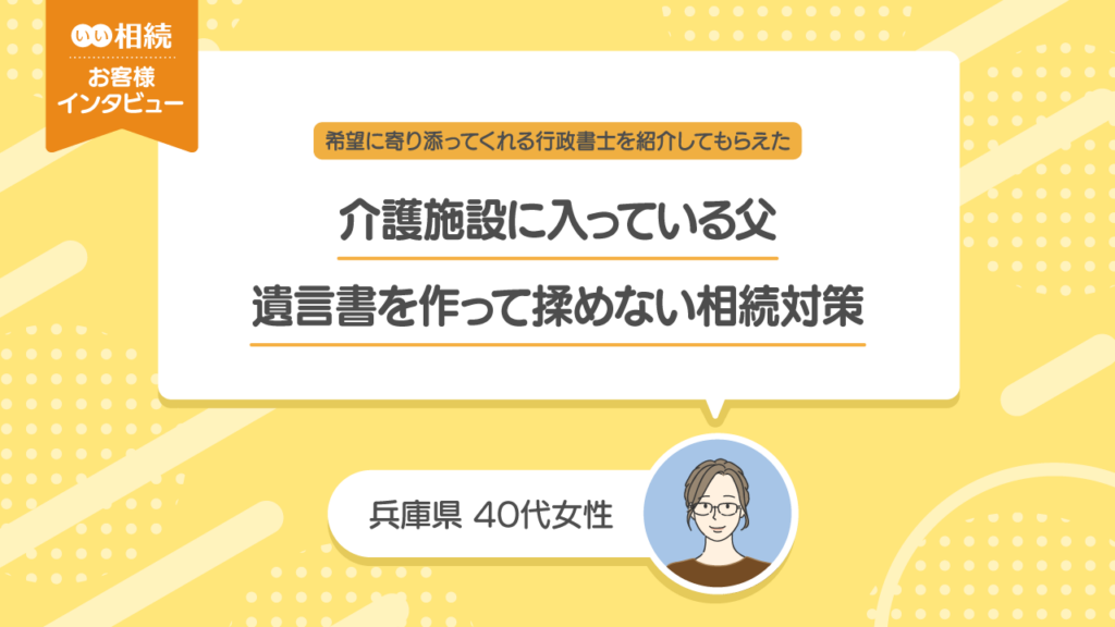- 介護施設に入所中の父の遺言書作成をサポートしてくれる行政書士探し【お客様インタビュー】