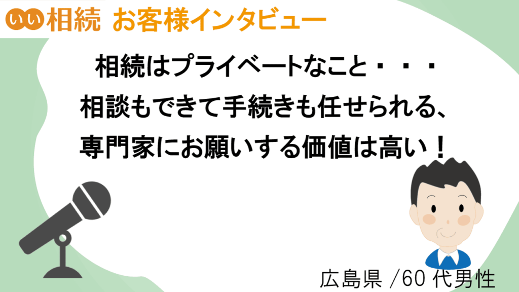 お父様が亡くなり、相続手続きを孤軍奮闘されていらしたご相談者様(広島県/60代男性)