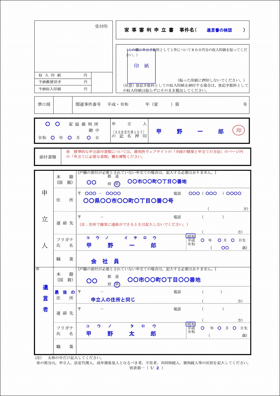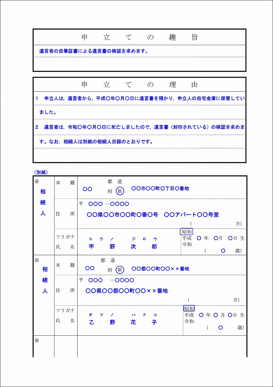 遺言書の保管者、または遺言書を発見した相続人がおこないます。検認の申立てをした人を、申立人といいます。