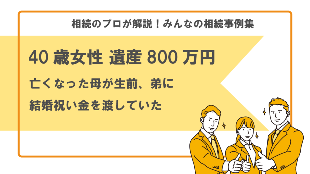 【事例】母が亡くなる前、弟が結婚祝い金をもらっていたそうです。これは相続財産になりますか?(40歳女性 遺産800万円)【行政書士執筆】