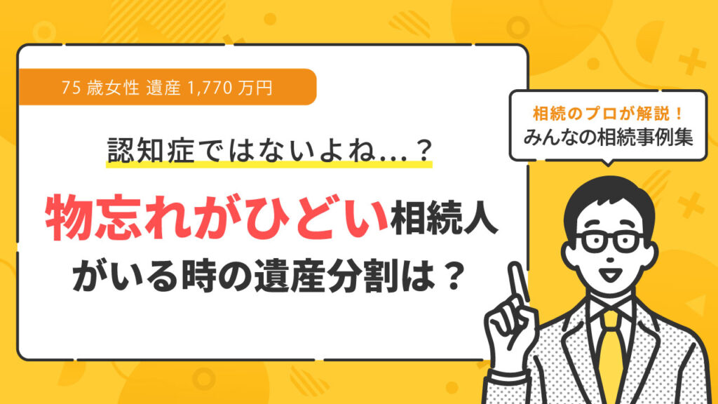 今回は、物忘れがひどい相続人がいる場合の遺産分割について、75歳女性の方からの相談事例をご紹介します。