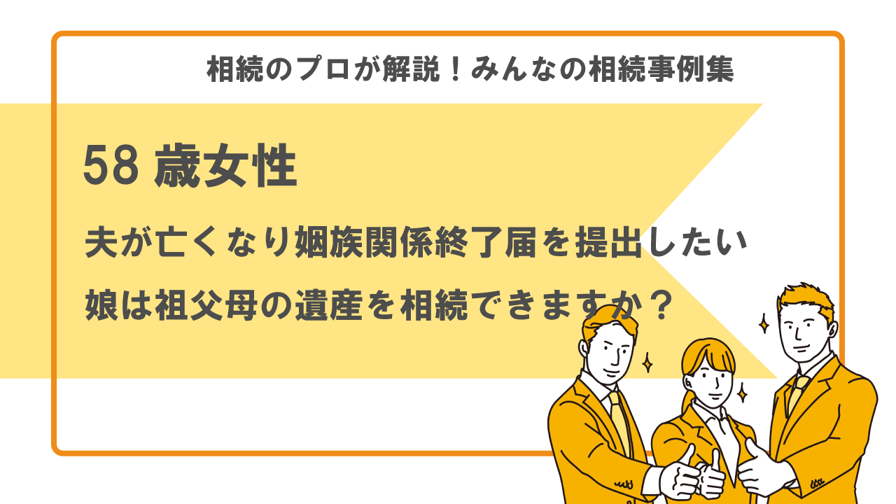 【事例】夫が亡くなったので義実家と縁を切りたい。姻族関係終了届を提出したら娘は祖父母の遺産を相続できますか?(58歳女性)【行政書士執筆】